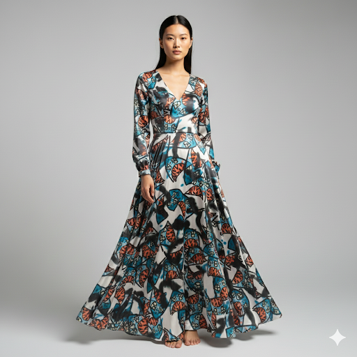 Printed Pure Silk Organza Fabric 43" Wide (Sold By Metre)