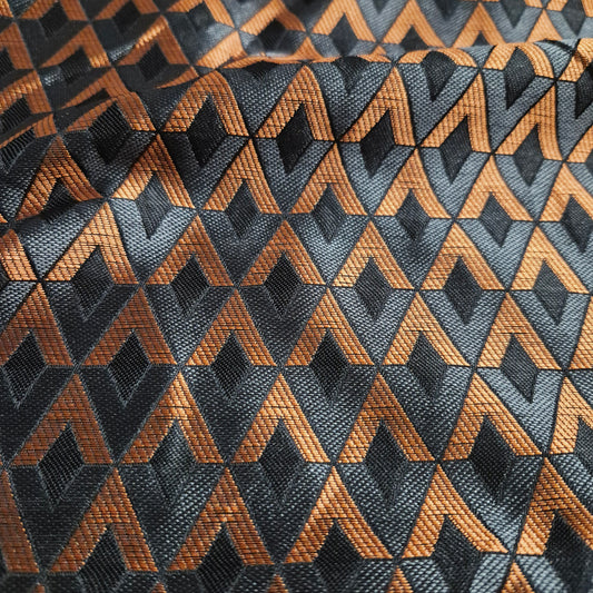 Houndstooth Crowbar Pattern Fabric Black and Copper Lurex 55"wide