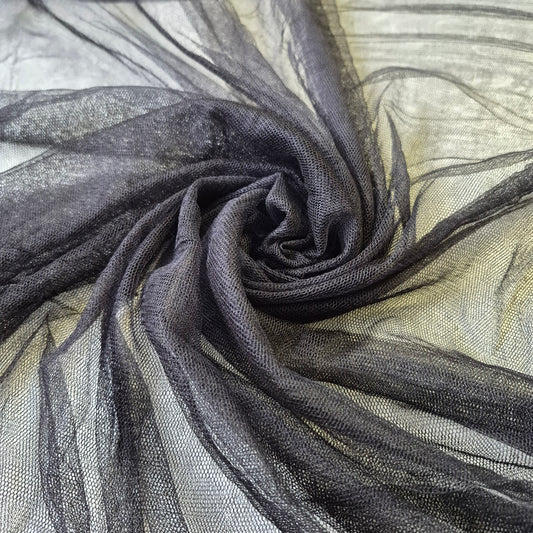 Pure Silk Soft Tulle Mesh Fabric Black Colour 55" Wide